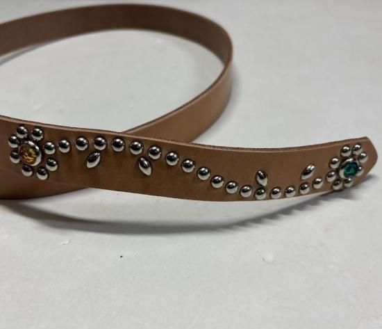 コリンボから新たにスタッズベルトを展開するJEWEL STUDDED LEATHER BELTのフラワーパターン27mmのエンドオンリーの紹介です。こちらは全体にスタッズが打ち込んでいるパターンではなく、エンド部分のみのスタッズのフラワーパターンのスタッズベルトになります。