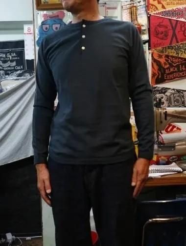 フルカウント定番の4本針フラットシームヘビーウェイトロングスリーブヘンリーネックTシャツです。