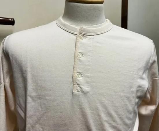 フルカウント定番の4本針フラットシームヘビーウェイトロングスリーブヘンリーネックTシャツです。