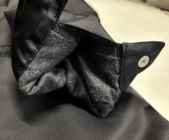 ライナーにネル起毛コットン100%のネル素材を使用して保温性を確保し、特徴のあるスナップで留めるチンストラップが配されています。また左胸裏に内ポケット、裾にはコードがそれぞれ配されています。チンストラップが邪魔な場合は先のスナップで留めてください。