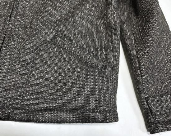 100年以上も昔、アウトドアマンの為に開発されたこの素材は表面のコットン編み物(ラッセル編み)と裏面のウールフリースの2層構造となっておりいわばスウェットと同じ構造となっております。その割合は裏面のフリースが7割以上を占め、起毛をかなり強くかけることでニット製品とは思えない程の耐久性が生まれます。表面は2色の番手の異なる糸を撚り合わせることにより通称「ごま塩」と呼ばれる凹凸のBROWN'S BEACH特有の雰囲気を醸し出しております。