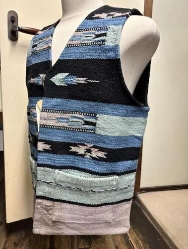 フェローズから2025年春夏から新たにスタートした MADE IN INDIAシリーズのベストになります。ラグやカーペットの名産地であるウッタル・プラテージュ州で、手動織機によっておられたダリ織の伝統的な生地を使用した新作ベスト。生地はコットン100% サイズの設定ははLとXLサイズのみです。ラグとは異なり、衣服に適した柔らかさが求められるため、熟練の職人が手作業で微調整を行うなど、一枚一枚丁寧に製作しています。サイズ感はゆったりとしたシルエットなので、レザーやGジャンとのコーデにも使えます。